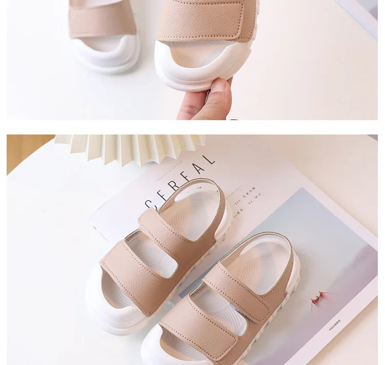 夏の外遊びを快適に楽しめる、子ども用の軽量サンダルです。面ファスナー仕様で脱ぎ履きしやすく、成長期の足に合わせてフィット感を調整可能。クッション性のある履き心地と滑りにくい靴底設計で、公園遊びからビーチ、プール周りまで幅広いシーンに対応します。シンプルで合わせやすいデザインのため、日常使いにも活躍する一足です。